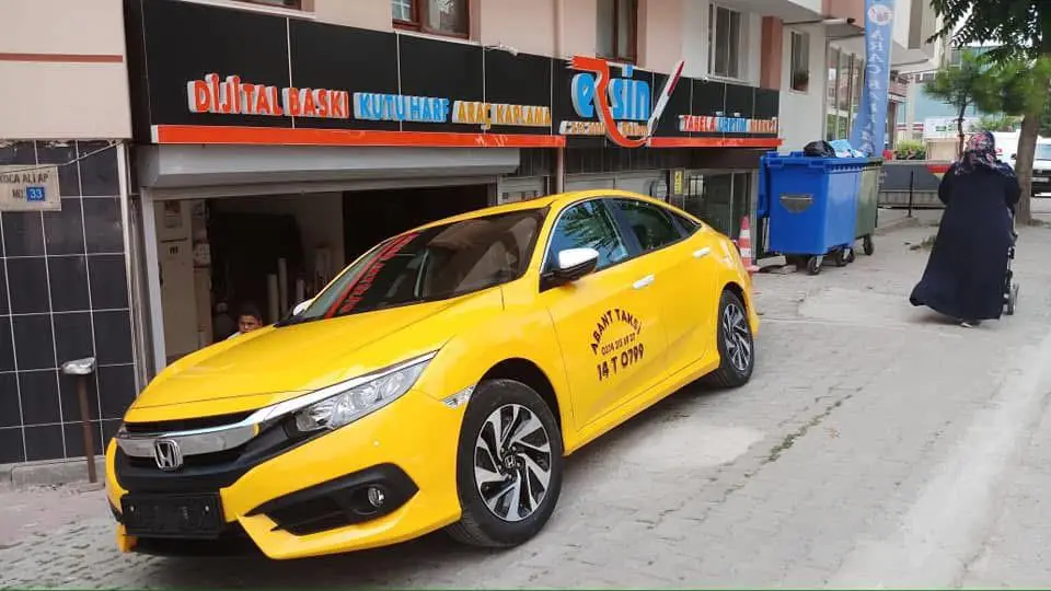 Bolu’da hizmet veren Abant Taksi için, Ahmet Bey’in sedan aracına şehir içinde maksimum görünürlük sağlayacak, dayanıklı ve yönetmeliklere uygun bir taksi giydirme uygulaması gerçekleştirdik. Hedefimiz; taksinin uzaktan dahi fark edilmesi, marka bütünlüğü ve uzun ömürlü kullanım oldu.